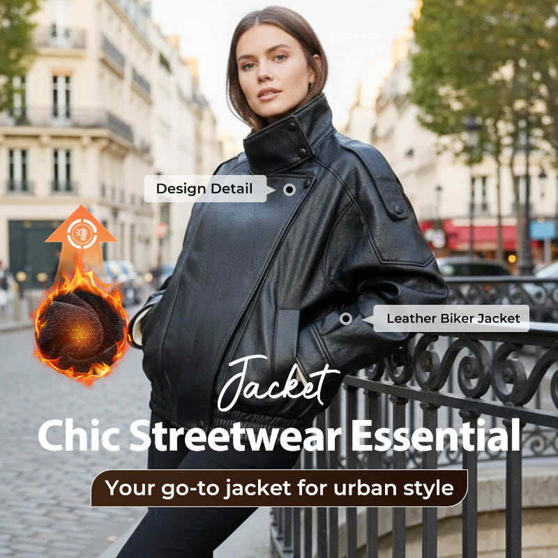 🔥 The Ultimate Attitude - Faux Leather Biker Jacket - Edgy Style & Everyday Comfort 【Limited Stock】